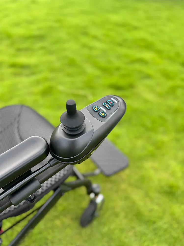 - Slimme controller: De geavanceerde controller is het hart van deze rolstoel en biedt naadloze bediening. Hiermee kunt u eenvoudig in- en uitschakelen, de snelheid aanpassen en de batterij in realtime monitoren via een duidelijk display. Het beschikt over een claxon voor veiligheid, links- en rechtsomschakelbare bediening en een speciale oplaadpoort. IP66 waterdicht voor duurzaamheid onder alle weersomstandigheden.