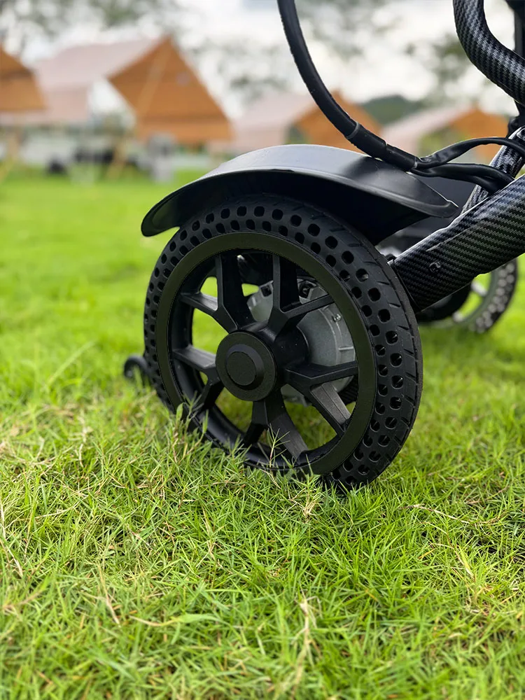 Onze elektrische rolstoelen hebben honingraatbanden voor zowel de voor- als achterwielen, waardoor ze geschikt zijn voor zowel binnen- als buitengebruik.