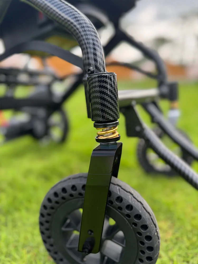 - Comfortgericht ontwerp: Het schokabsorberende ophangsysteem in zowel de stoel als de voorwielen zorgt voor superieur comfort en ondersteuning, zelfs op hobbelige ondergronden.