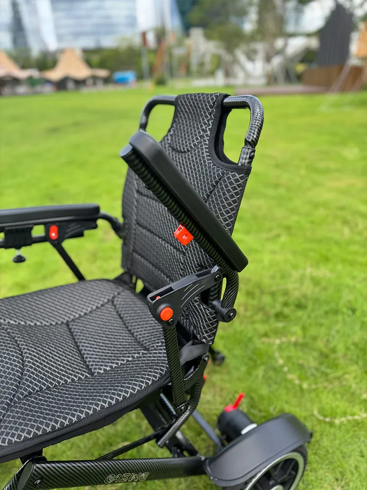 - Maximaal 48 km bereik: De B20 elektrische rolstoel wordt standaard geleverd met één 12Ah lithiumbatterij. U kunt kiezen voor de dubbele batterijoptie, die een maximaal bereik van 48 kilometer biedt. Deze rolstoel is luchtvaartgoedgekeurd, wat zorgt voor zorgeloos reizen.